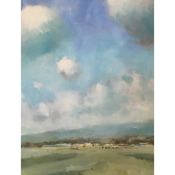 Painted between heavy showers on the beach at Langstone Harbour looking towards the South Downs.