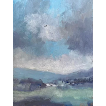 Part of the summer hills series painted in the Arreton valley on the Isle of Wight. The sky was full of shower clouds after a short storm.