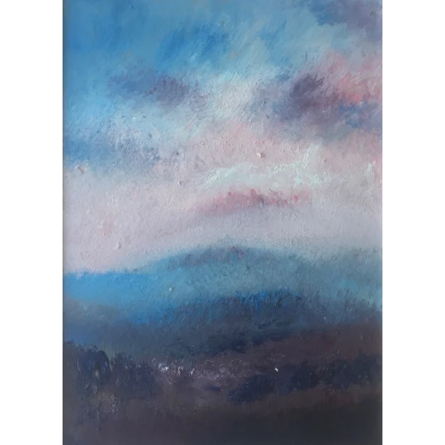 In de vroege ochtend geschilderd, gaat het schilderij over de zachte kleuren van de ochtendlucht.